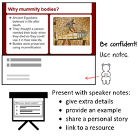 Practice public speaking by presenting with digital or printed speaker notes.